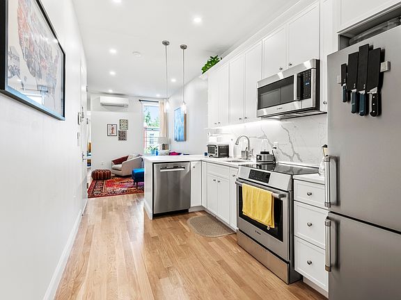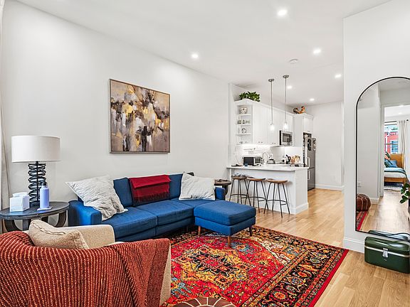 Welcome to 113 Jewel Street, a beautifully renovated pre-war 2-bedroom, 2-bathroom townhouse unit with the high-end condo level finishes. Inside, you'll find white oak hardwood floors, abundant of natural light throughout and high ceilings. The open-concept kitchen is outfitted with Bosch and Bertazzoni appliances, quartz countertops, a breakfast bar, and modern lightingperfect for cooking and entertaining. Both bedrooms are generously sized, and the bathrooms are clean and contemporary. Enjoy the convenience of central air conditioning, an in-unit washer and dryer, and a virtual doorman system. Situated on a quiet, tree-lined block in the heart of Greenpoint, you're just minutes from McGolrick Park, the G train, and some of the neighborhood's best cafes, restaurants, and shops. No Broker Fee - $20 application fee per applicant Most pets are allowed