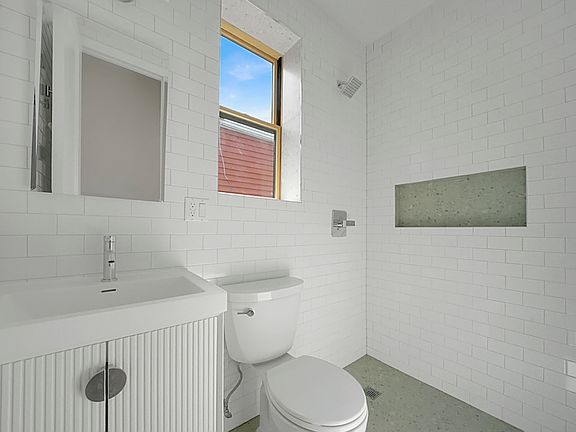 The Jewel of Greenpoint! An expertly restored turn of the century row house in the Heart of Greenpoint. Step inside and you're greeted with white oak hardwood flooring throughout the home flanked by a custom built white shaker dream kitchen. The appliances are top of the line and include a state of the art Bosch induction stove. The marble veined quarts countertops extend seamlessly up the backsplash for a clean, modern look and over the breakfast bar perfect for casual dining. The bathrooms are magazine ready with terrazzo style porcelain and subway tile with soaking tub and glass enclosed showers. Natural light floods the bedrooms and show off the 10ft ceiling heights. Other features include in-unit W/D and central heat/AC for each room as well as a video intercom system. Be the first to live in this newly designed piece of history.