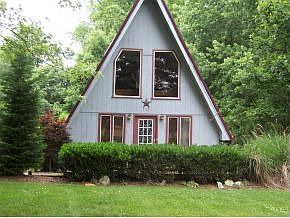 For more information, contact Stephanie Conner at (423) 646-9988. Visit http://www.crye-leike.com/johnsoncity/327381 to view more pictures of this property. Your own cabin-in-the-woods on over an acre in the country yet so close to town. Unique A-frame has soaring ceiling and large windows in living room, spacious kitchen has newer stainless appliances, tin backsplash, dining area and large deck with pretty wooded views, lofted master bedroom has built-in bed, closet drawers and other built-ins and its own private deck with nice views, finished basement has a bedroom with gas fireplace, another room with a closet that can be an office or bedroom and laundry room. Also Koi pond, 2 barns, small pasture, level grassy front yard, security system, new metal roof, newer heat pump and water heater. Buyers/buyer's agent to verify all information.