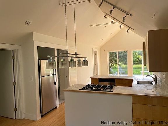 Quintessential Woodstock Cottage! Completely rebuilt in 2009, but leaving the marvelous stone fireplace and chimney from the original cottage. Fully updated kitchen, and central air conditioning. Light and airy, with cathedral ceiling and a wall of glass in the living room, to bring the outdoors in! Open floor plan blends the dining area into the kitchen, into the living room. Fabulous view over the Thorn Nature preserve, the proximity of which makes for a perfect perambulation, morning or evening. Centrally located, just minutes from Kingston and Woodstock, this cottage makes for an idyllic weekend getaway, or an easy to care for down-size.