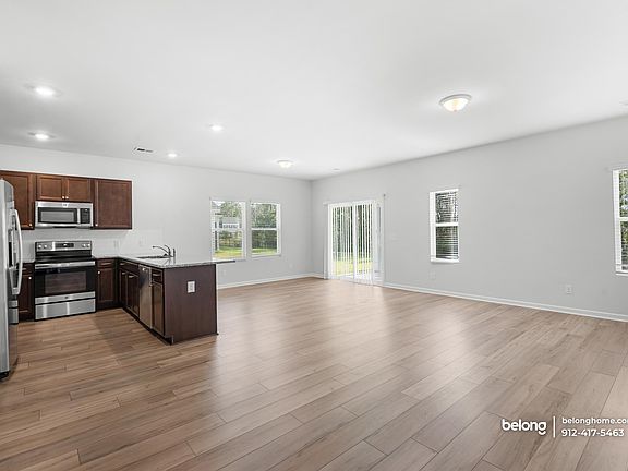 With its comfortable layout, bright open spaces, and wood-inspired flooring throughout, this 3-bedroom, 2-bath home blends function and warmth in a setting that feels easy to settle into. Whether you're preparing meals or catching up over coffee, the open-concept kitchen, dining, and living areas allow you to move effortlessly from one activity to the next. The kitchen offers generous counter space, dark cabinetry, and stainless steel appliances, with a peninsula that doubles as a prep station or casual dining spot. Sunlight filters through wide windows in the adjacent living area, creating a welcoming atmosphere that feels connected to the outdoors, thanks to sliding glass doors that lead to the backyard. All bedrooms provide retreat-like comfort, while the main suite includes a private bath with a double vanity, walk-in shower, and soaking tub. You'll find additional convenience in the laundry room with a washer and dryer, as well as the attached 2-car garage with an automatic door. Located in Pooler, you're within easy reach of everyday essentials - from grocery stores and dining spots to fitness centers and parks. Quick access to I-16 and I-95 makes commuting a breeze, while nearby Tanger Outlets and the Savannah/Hilton Head International Airport add even more convenience to your day-to-day. *Our homes come as-is with all essentials in working order. Want upgrades? Request it through the Belong app, and our trusted pros will take care of the rest!