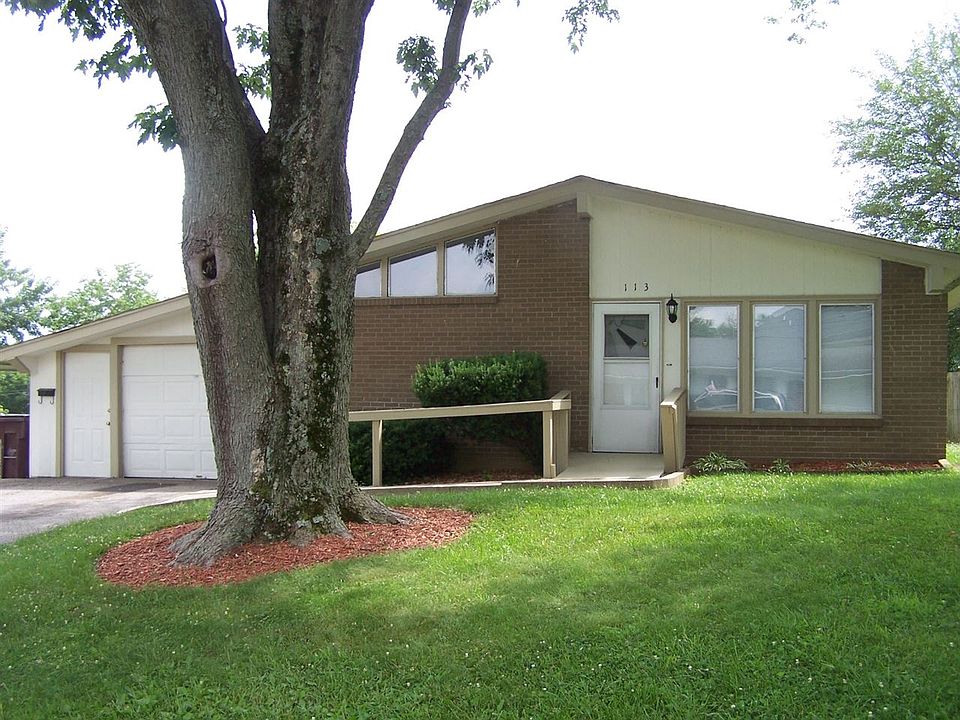 3 bedroom ranch with 1.5 baths and garage located on dead end street--vaulted ceiling in living and dining--open floorplan--all kitchen appliances remain--laminate flooring in all rooms except kitchen and baths-central heat and air--fenced back yard and attached deck--POSSESSION DATE OF DEED owner to pay $500 twd home warranty