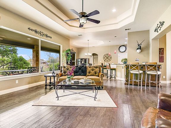 Come home to a single story, 4 bedroom, 2.5 bath, open floor plan very well designed with the outdoors in mind. As you enter the home the first thing you'll notice is the wall of windows looking out the the oaks trees and the creek. Very private home in a gated community on 3.61 cres. Wild game exemption to allow for low taxes, seasonal hunting allowed. Short drive to Boerne, Fredricksburg and Comfort.