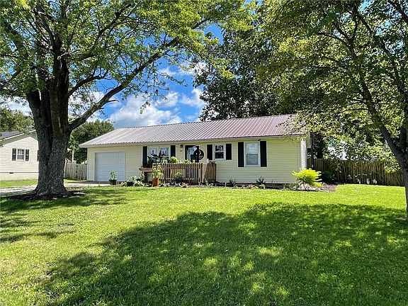 A MUST SEE! This home won't last! Move in ready, immaculately maintained true ranch with lots of updates since 2020 including AC, Luxury Vinyl Plank throughout entire home, wooden privacy fence, whole home interior paint, painted kitchen cabinets with new hardware, front door and frame, and landscaping. Kitchen boasts extra cabinets with stunning, handcrafted Butcher Block countertop and hanging pots & pans and cup racks. Exterior is low maintenance with vinyl siding and a nice metal roof. Home also has attached, spacious garage and a full basement too! Come see this charming home before it is gone!