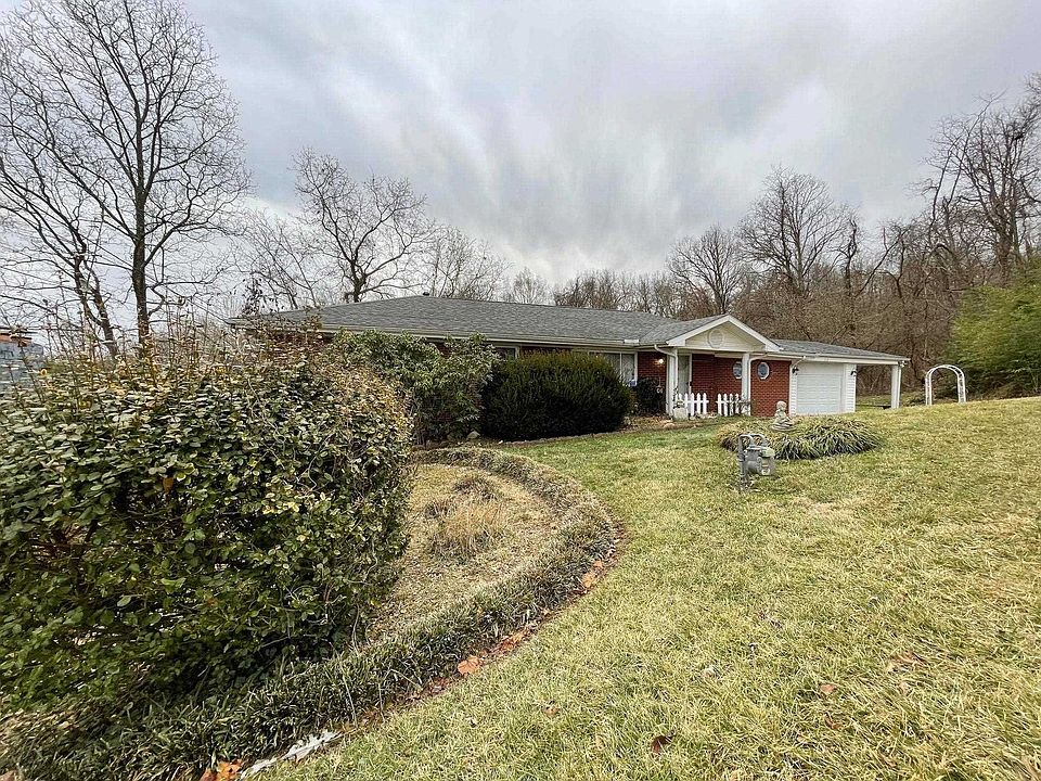 This brick ranch has so much potential! Lots of space all on one level including a large family room with gas fireplace. The kitchen opens up to a rear sunroom that has adjoining decks on each end and wooded views. Full walkout basement has an additional bedroom, full bath, and 2 other large rooms that could easily be finished for additional living space. Attached garage, carport, courtyard and mature landscaping along with a great location make this home a must see!