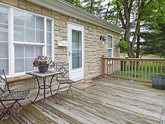 Cute 2 bedroom, 2 full bath Cape Cod in Morrow. Stone front and rear walls. Large fenced rear yard. Decks front and back. Adjoins Phegley Park and the bike trail. Luxury Vinyl Plank flooring through the living room and kitchen. Property is in flood plain. Second floor Rec Room could be bedroom.