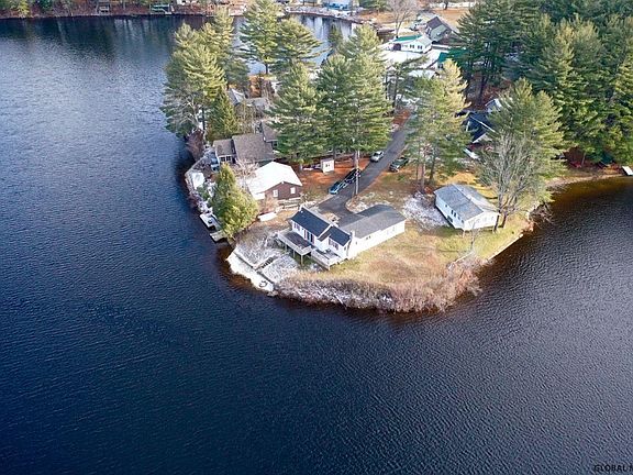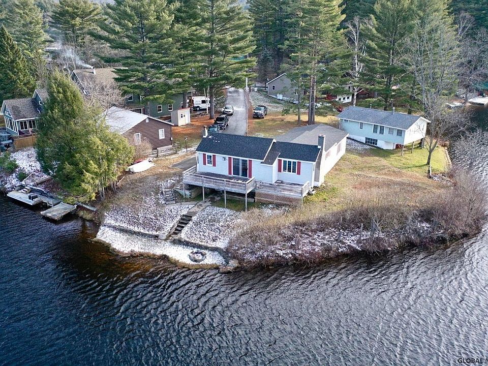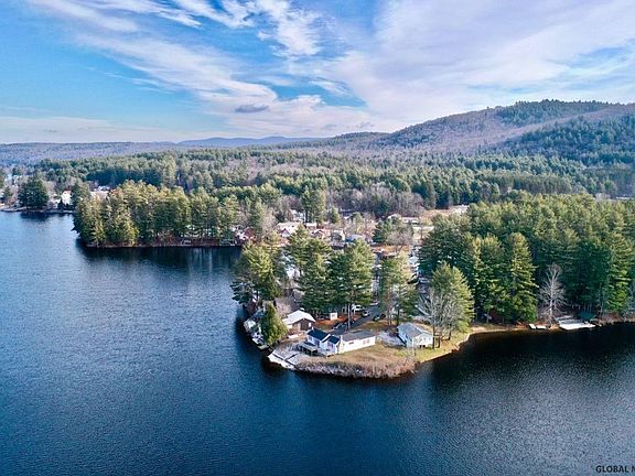 Own a piece of paradise with over 200' direct lake front with water views that surround the house. This home is situated on a double lot, at the end of the road, on a point with views of Lake Alqonquin and the Adirondack Mountains. Breath taking no matter the season. 2 bedrooms, 1 full bath, kitchen, living room with wood burning, fire place and dining area with a gas stove. Plenty of closets for storage. The wrap around deck offers great additional space for relaxing and outdoor entertaining. Laundry hook up is in the basement which also offers additional storage space. All you need is your kayak!