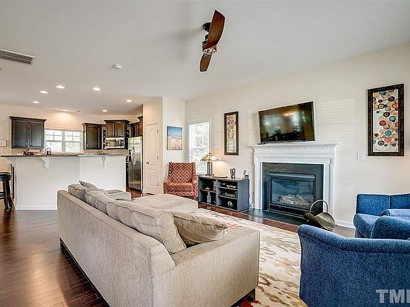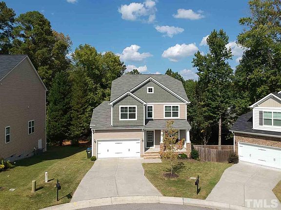 Location! Fabulous 3-yr-old home is situated on a cul-de-sac lot with a rocking chair front porch. Open floorplan has 3" wide wood flrs on main level. LR has gas log FP and opens to the Kitchen that has granite cntrtps, ss appls including a gas range and a Bosch dishwasher. Upstairs you will find MBR suite w/ WIC and private bath as well as 3 add'l brs and laundry room. Fenced side yard. Grilling deck and patio. 2 car garage. Short walk to American Tobacco Trail. Mins to Southpoint, UNC, Duke, RTP & more!