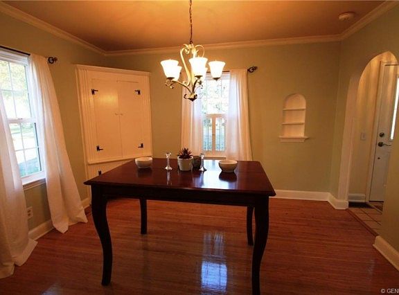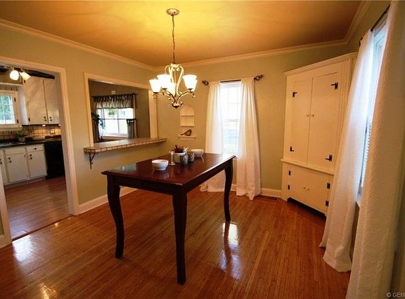 You won't want to miss this fabulous 1930's vintage Cape-Cod. Large kitchen with tile backsplash, laminate flooring, breakfast bar and newer appliances all included. Gleaming hardwood floors throughout and every room freshly painted. Living room has wood burning fireplace, large bay window & built-in shelves- plus 1st flr den or office. Formal dining room has built-in corner cabinet and opens into kitchen. Beautifully renovated full bath with subway tile, wainscoting & slate gray tile floor. Fully fenced lot with patio, nicely landscaped. The home also features: tear-off roof 2015, thermal windows, vinyl siding, all appliances included. Great location- close to shopping, restaurants and some of the area's finest homemade donuts!!