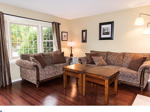 METICULOUS END-UNIT TOWNHOME IN RITTENHOUSE SQUARE - HISTORIC TRAPPE conveniently located to schools, shopping, transportation, and major arteries. This 3 bedroom, 2.5 bath, brick front and side home, situated in a cul-de-sac, offers a large gourmet eat-in-kitchen with oak cabinets, ceramic tile floor, updated countertops, and tumbled tile backsplash. A Pella designer series glass door opens to the rear deck, perfect for entertaining and watching the family play in the spacious rear or side yard. Warmth and relaxing ambience are created with the dual-sided wood-burning fireplace between living and dining room areas, surrounded by gorgeous Patagonian Rosewood hardwood floors. Natural sunlight shines brightly through two bay windows. A powder room with wainscoting and ceramic tile flooring completes this level. The second level features a large master bedroom with three closets (his, hers, and a deep third closet with built-in shelving), and full bath with jetted tub. Two additional bedrooms and hall bath are also located on this level. The lower level finished basement area with outside egress makes a great place to hang out with friends or family and includes a media space, office area, and storage in addition to a laundry room with additional shelf storage. Other amenities include waterproofed basement, new water heater (2017), newer replacement windows, ADP security system, Wi-Fi enabled thermostat, Verizon FIOS, and the list goes on. Conveniently located minutes from Route 422, Providence Town Center, Wegmans, the Movie Tavern, Giant, Target, Starbucks, the Spring Valley YMCA, Limerick Philadelphia Premium Outlets, and many local restaurants. The home is in walking distance to Ursinus Colloege, downtown Collegeville, and several parks. NOTE: Total square footage including basement is approximately 2,150 square feet. DON'T HESITATE TO MAKE THIS HOUSE YOUR HOME. ACT NOW!
