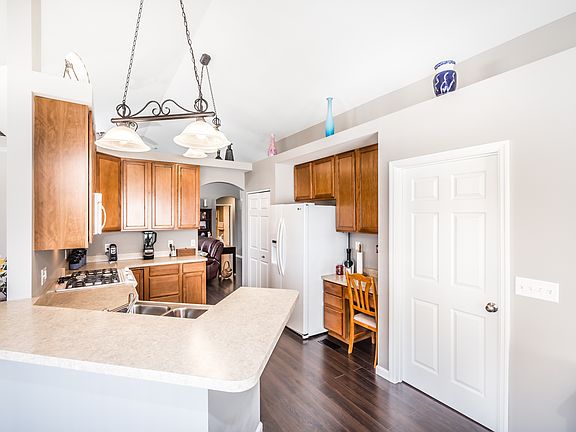 This is your next home! The main floor has updated laminate hardwood and vaulted ceilings galore. The kitchen boasts a breakfast bar and nook, flowing into the dining room with a corner deck just outside. A wood burning fireplace accents the large living room with plenty of natural lighting. Adult height vanities accompany the master bath suite with separate tub and shower. 2 more bedrooms are on the main floor. The basement is HUGE and unfinished, waiting for your finishing touches. Don't forget the roughed-in bath! A vinyl fenced yard is perfect for the pets and kids this Summer.