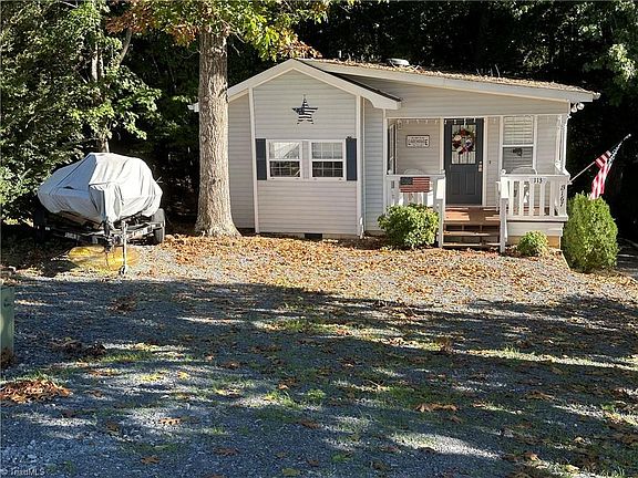 Discover relaxed living in this charming 1-bedroom modular home nestled in Badin Shores Resort at Badin Lake. The current layout offers the flexibility to add a second bedroom. Enjoy the scenic winter views of the lake from your large living room. Step outside onto the spacious back deck that overlooks your private, wooded lot that spans over 1/4 acre. Expand your living space with the separate basement area, (not accessible from upstairs) currently heated with electric baseboard heating, perfect for future possibilities. Plus, an enclosed storage area is ideal for all your boating gear. Enjoy the resort lifestyle with amenities  that include a mile-long waterfront boardwalk, community boat ramp, fishing pier, sandy beach, swimming pool(open seasonally), clubhouse, playgrounds, basketball courts, putt-putt, and a stocked catch-and-release pond. Everything you need for lake life is right here!
