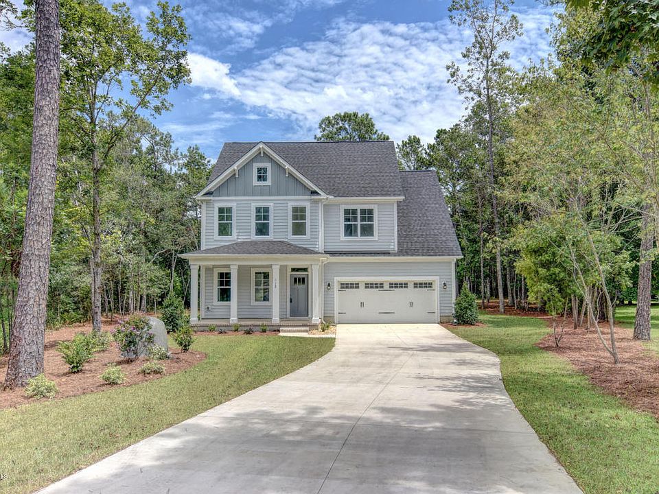 New construction by Hardison Building. The Danbury is a wonderful open floor plan with master suite on 1st floor. 3 bedrooms up with 2 full baths. Carpet up stairs. Main floor wood flooring with carpet in master bedroom. Tile in baths. Granite countertops through out. Fireplace in living space. Screen in back patio. Beautiful rocking chair front porch. Located in a cul-de-sac this .73 acre lot gives you privacy and room to enjoy. Exterior Hardy Plank with stone accents. Pelican Reef is a gated community that offers Pool, clubhouse, day dock.