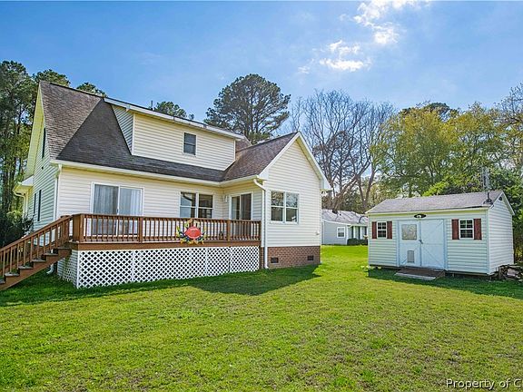 Waterfront home on the North River with wide, spectacular river view! Three bedrooms, two full and one half baths with master bedroom en suite and walk in closet on first floor. Two spacious bedrooms on the second floor share a jack-n-jill bathroom w/ both having their own sink and vanity. The open floor plan for living, dining & kitchen. Enjoy time on the spacious deck overlooking the river or crab/fish/boat from your pier in your back yard. This quaint neighborhood offers a community dock and boat ramp. It's River Time!!!