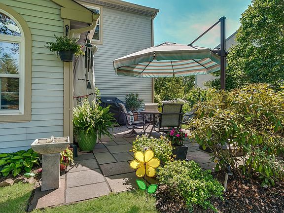 This end unit townhome combines comfort, upgrades and privacy in one of the largest units in the desirable development of Newtown Grant. Meticulously maintained, the home has beautiful curb appeal with lush landscaping, a custom E.P.Henry walkway and resurfaced driveway. The first floor features tile flooring in the entry way, formal dining room, kitchen and eat in area, and some beautiful hardwoods in the living, and family rooms. The kitchen offers solid oak cabinetry, granite countertops and newer stainless steel appliances. Enjoy casual dining in the eat in area off the kitchen which includes spacious built in cabinetry ideal for storage or buffet serving. The heart of the first floor is the family room with cathedral ceiling, newly replaced skylights, arched windows and stunning hardwood flooring. Exit the family room to custom paved patio area with privacy provided by landscaping and a view of one of the many open common areas in the development. First floor also includes a formal dining room with chair rail and a large living room. On the second floor is a generous master suite with a recently remodeled master bath with soaker tub and walk-in shower. Two other bedrooms and large hall bath complete the second floor. Upgrades include all replacement windows, newer HVAC system, water heater, garage door, fence, and new paint on the exterior. Come see your new home in a special development. 2020-08-06