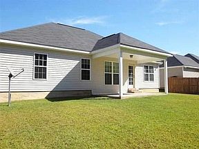 Like New Home! 3BR/2BA, split floor plan. Washer/dryer (less than 2yrs old), refrig. & curtains stay. Walk-in laundry rm. Lg living rm w/beautiful laminate wood floor & crown molding. Ceramic tile in all tile wet areas. Custom kitchen cabinets w/beautiful tile backsplash. Mstr bath features shower, garden tub, double vanities. Lg mstr BR w/trey ceiling & walk-in closet. Covered rear patio overlooking beautiful backyard w/sprinkler system. Great schools & close to base.