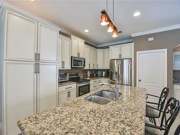 **OWNER HAS DONE $95,000 IN RECENT UPGRADES!!* BRAND NEW KITCHEN, ALL NEW BATHROOMS, FIXTURES AND FLOORING!! Welcome to the home you have been waiting for! This beautiful two-story pool home greets you with grand 20 foot ceilings and is impeccably remodeled through and through. The kitchen has new custom wood farmhouse cabinetry and gorgeous countertops. The layout is perfect for entertaining with large living room, open kitchen concept, fireplace and beautiful views out to your large pool and lanai area. First floor also has one bedroom and full bathroom, perfect for an in-law suite. The remaining bedrooms are located on the second floor along with additional flex/loft space. All secondary bedrooms are HUGE and provide tons of space and storage. Step into the master suite you've always dreamed of, showcasing a large walk in closet, tall ceilings and plenty of room for a sitting area. Master bathroom was recently remodeled with walk in shower and stunning natural stone tiles. If that doesn't make you fall in love, step outside and enjoy a huge backyard perfect for throwing or kicking the ball around, or allowing your animals to run safe inside their fully fenced yard. Additional upgrades include: 2019 recently replaced pool pump parts, 2018 NEW ROOF and patio screens, 2016 NEW driveway and walk up with pavers, 2015 NEW downstairs A/C, 2014 NEW upstairs A/C.