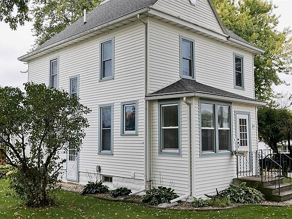 Highly recommend taking a look at this one! This 2 story home has a lot to offer. Features include a spacious eat-in kitchen, with plenty of cabinet space. Newer flooring in the entry. Beautiful original woodwork. Updated half bath on main level. The upstairs includes 3 bedrooms and a very nice updated full bath with tub and a walk-in shower. Need more storage space, you can find that in the easy accessible walkup attic that is clean, open and has solid flooring. Relax or entertain on the large deck. Be sure to check out the oversized 2+ car garage. Enough room for two vehicles and a few extra toys. Not enough garage space, you can store more things in the extra storage shed that has a concrete floor and overhead door. Located on a corner lot. Enjoy the small town living with this wonderful place to call home