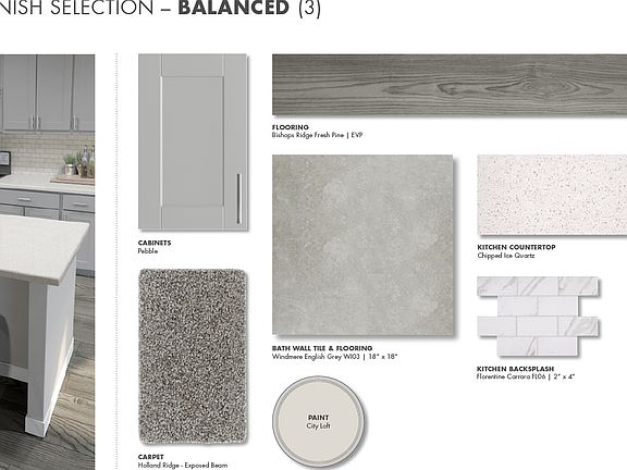 Cheer on your favorite team on the big screen in the second-story loft. Pebble cabinets with white quartz countertops, Bishop Ridge Fresh Pine EVP flooring and carpet in our Balanced (3) Package.