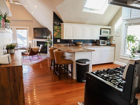Move right in and make this stunning penthouse-style condo your new home! Located in the highly sought-after St. Marks neighborhood, this sunny two-bedroom condo boasts high vaulted ceilings, recessed lighting, a gas fireplace, and hardwood floors throughout. Feel right at home in your spacious kitchen which includes granite countertops, stainless steel appliances, a gas stove, & a breakfast bar! You will love the primary bedroom, featuring double custom built-in closets and an ensuite bathroom. You can keep your 2nd bedroom for guests because you now have the perfect nook for a home office or library! The condo also includes central air, in-unit W/D, two private decks, a shared fenced-in yard, & private storage. Just minutes from the Shawmut & Ashmont T stations (or I-93), this is the ideal commuter's location and opportunity to go from renter to homeowner! Private showings begin Friday. Open houses Saturday & Sunday.