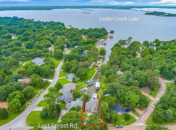 Cedar Creek Waterfront! Beautiful boat dock with fun, open party deck! Neat Patio with outdoor fireplace. Nice 3 Bedroom, 2.5 bath home. Open kitchen has abundant cabinetry and large island, dining and living with lots of windows and electric fireplace. Master Suite downstairs, 2nd living area upstairs could be home office or 4th bedroom. Additional 2 bedrooms and bath upstairs.