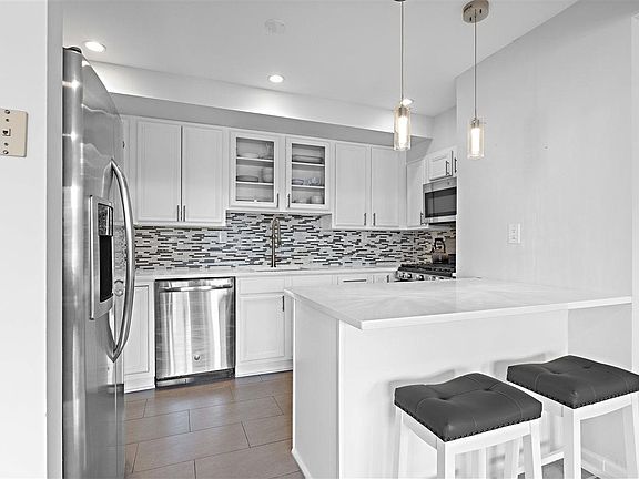 Are you wanting to live in downtown Hoboken with the convenience of your own SUV size parking onsite and an easy walk to local stores and restaurants? This sprawling, bright, 1310 square foot 2 bed/ 2 bath home allows for possibilities, while also offering quiet tranquility. White quartz counters, breakfast bar and wine cooler accompany the open kitchen. In the master bedroom, you will love a huge walk-in closet organized with Elfa-system storage design. The large master bathroom boasts a double vanity and tons of built in storage. Enjoy fresh air on your private balcony and shared backyard. This home is turn key ready with the kitchen and both bathrooms renovated in 2019. Casablanca quiet technology ceiling fans in the bedrooms and living room. Home has a built in smart Nest thermostat. Your dream home awaits.