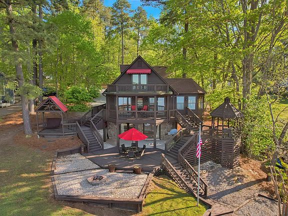 113 Magnolia-a charming address for a charming property on the northeast side of the lake on the main channel with big sunrise & bigger sunset views from the home's southern exposure and with the best location both by land and water! The square footage here packs a punch - 4 bedrooms with a flex room and two levels of living space provide separate retreats a& easy access to outdoor living. And just as it should be, outdoor living is the focus - big views from the balcony, covered decks, gazebos, waterside deck; the NEW craftsman boathouse with sundeck & jump platform is the icing on this sweet offering. Full furnishings package negotiable. A detached two bay garage provides all the lake storage and has great potential for future equity with an unfinished room above. See MLS documents for all of the details and be sure to view the video tour!