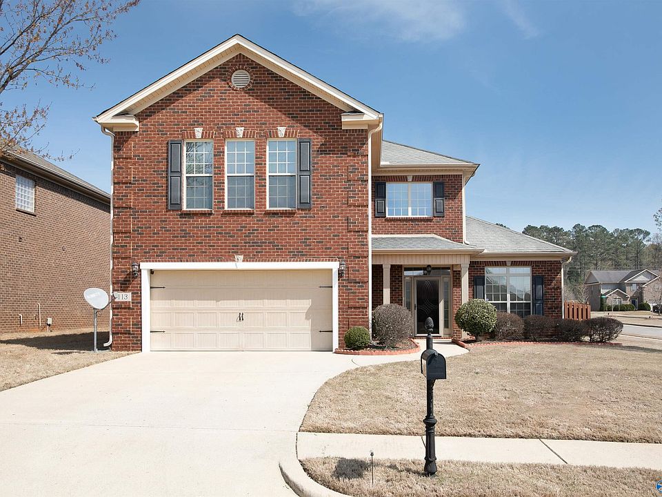 Beautiful one owner home located just minutes to Redstone, Publix, and the shops of Madison Towne Centre! Main level owner's suite w/ glamour bath, large great room w/gas log fireplace, kitchen has granite counter-tops and large breakfast area, formal dining room, 1/2 bath for guests on main level. Three bedrooms upstairs w/ full bath and large bonus room. Screened back patio perfect for enjoying your morning coffee or evening beverage. Large corner lot w/ privacy fence and 2 car garage. Great neighborhood w/ sidewalks and pool!