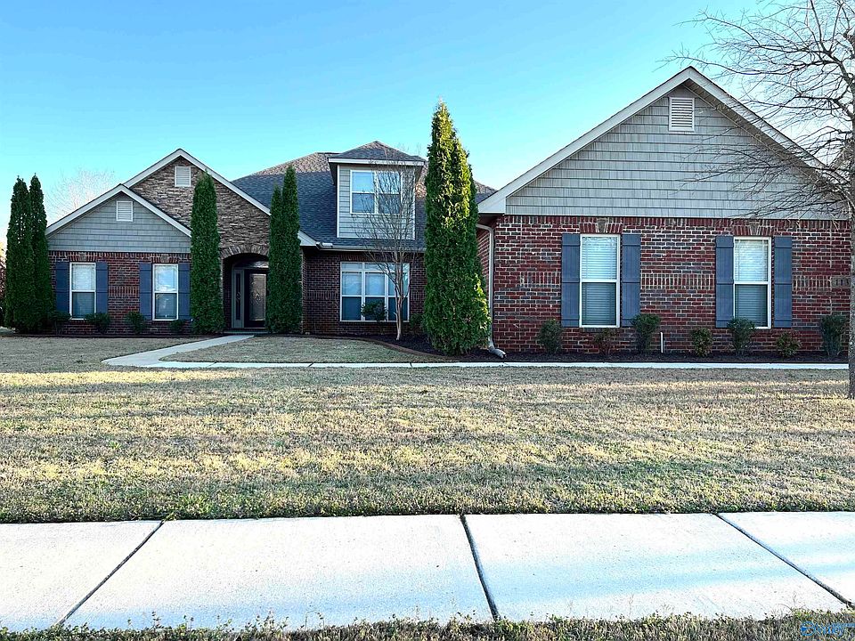 Price improvement with $10K toward rate reduction or closing costs! Fantastic all brick / stone home with 12’ ceilings and 3600+sqft is zoned to Madison city schools (James Clemens HS) and boasts an open floor plan with 4 bedrooms, 4.5 bathrooms, huge bonus room with wet bar and full bath could be a perfect teen or in-law suite, family room with gas fireplace, flex room, dining room, oversized screened in back porch, beautiful hardwoods throughout main living area, chef’s dream kitchen with granite, tile backsplash and large pantry. New roof in 2023. Oversized 3 car garage with level driveway and yard with sprinklers. Neighborhood pool is just down the street!