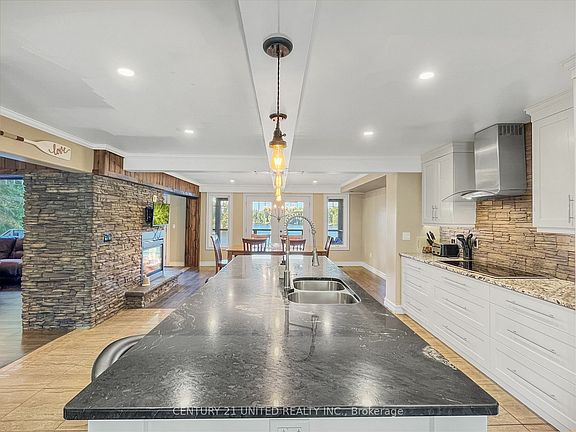 This magnificent property is located on the South shores of Baptiste Lake, a quick 15 min drive from Bancroft. Recently renovated, it offers 4 large bedrooms, a main floor office plus a bunky. The Great Room features vaulted ceilings open to the 2nd floor, and a two-sided stone clad fireplace. The kitchen impresses with built-in appliances, massive center island, beverage serving station & large dining area overlooking a covered balcony. Upstairs the primary suite is truly luxurious with its own separate entrance, private balcony, spa-like bathroom w/separate soaker tub & huge shower. Two more bedrooms are also located on this level, along with the well equipped laundry rm and additional bathroom featuring a towel warmer. The lower level games room is bright & spacious. This area and 4th bedroom both have walk outs to a hot tub overlooking the lake. While the interior of this home is absolutely stunning, the exterior completes this cottage experience with a gently sloping lawn to