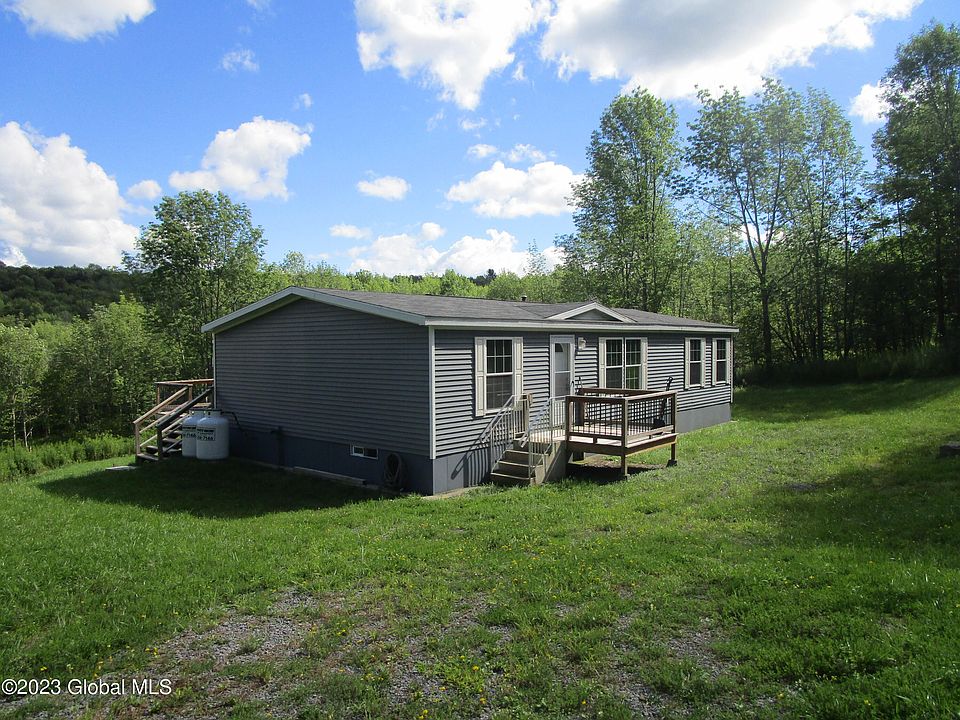 Privacy lover's dream place. like new three bedroom, two bath double wide home with a deck on a private road. Lovely, remote country setting yet has Spectrum internet. All comforts, propane heat, central air, underground power to house. The kitchen, dining ,living area is open with a cathedral ceiling. A large bedroom and bath on one end, two more bedroom sand bath on the opposite end of the home. The land has protective covenants. Plenty of room for recreation, gardening, wildlife.
