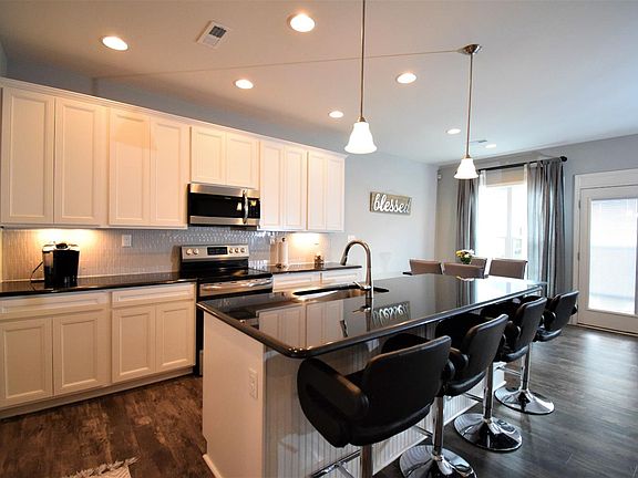 Amazing, almost new home with dazzling kitchen island and open concept living in a great location in Georgetown. Separate formal dining room for entertaining. The kitchen includes a step-in pantry, an island, stainless steel appliances, white cabinets, backsplash, absolute black granite countertops, all opening to the large central family room. The family room has a wood burning fireplace clad in stacked stone. LVP throughout family, entry and kitchen area for easy maintenance. The hall from the garage offers semi-private access to the guest suite area which features a large bay window and full bath. The upstairs master suite includes a trey ceiling and the master bath has a double bowl vanity, 5' fully tiled shower, linen closet, and his/her closets. Two bedrooms with generously sized closets, a hall bath, a utility room with folding counter, and large loft complete the upstairs. Security system and cameras with smart home features remote access to doors, hvac and more.