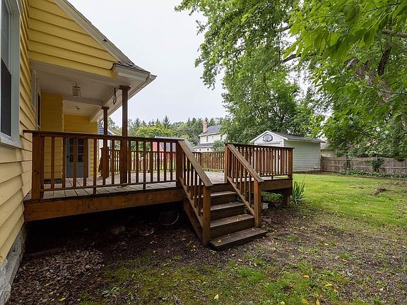This property will charm you with character. The entrance has an enclosed foyer and hardwood floors can be found throughout many areas of this home. There is a large front to back living room with a wood burning fireplace, plenty of natural light and hardwood floors. The dining room is adjacent to the updated kitchen with solid surface countertops and stainless appliances included with the home. A half bath is located near the back door that leads to the deck and large fully fenced flat backyard. The second level has 3 nice sized bedrooms, a full bath and a stair access to the unfinished full attic. This home has an attached garage and a detached garage! Some of the improvements included over time have been the steam furnace, approximately 9 years old. Updated kitchen with stove and dishwasher (2016). Windows 2018, deck 2014 and partially updated full bath. This wonderful home is conveniently located near highways, hospitals, downtown and Syracuse University!