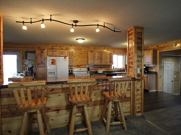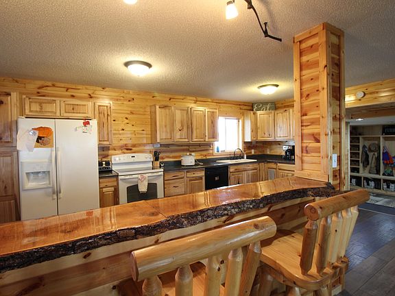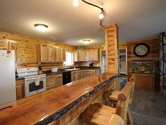 Every day feels like a vacation day when you enjoy the spoils of a relaxing spacious floor plan. This 4 BR, 2 Bathroom home is complete with a custom kitchen, Amazing log counter top, Huge Kitchen Island, a large den (currently serving as 5th bedroom), huge mud room with lockers, cozy living room with fireplace and spacious family room. Warm wood tones and open floor plan makes it the perfect entertaining area. Basement complete with a walk out to the back yard to enjoy a backyard fire or quick walk to the shed. A few finishings will make this your dream home! Is collecting cars or working on them your passion? Garage/shed over 1660+ Sq Ft (Portion of shed In-floor Heat ready). Location is spot on for your business venture as well. Check this out before its gone.