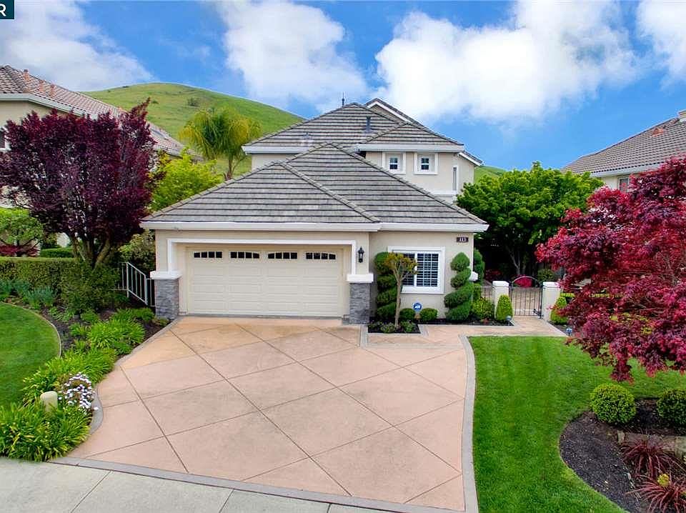 Bordering pristine dedicated open space this home features more than 2850 sq.ft. with 4 spacious bedrooms, executive office with cherrywood built-ins & 3 bathrooms in addition to spacious formal rooms, & updated gourmet kitchen with adjoining family room. A gated front courtyard creates an inviting entry & private retreat space. Decorative travertine tile in the foyer enhances the entry where you are treated to impressive views of the formal living & dining room with its dramatic 2-story vaulted ceiling. The large updated, eat-in kitchen showcases decorative crown molding, granite slab counters & backsplash, breakfast bar, center island & stainless appliances. The 4 bedrooms include a main-level guest room/au-pair quarters w/private entrance. 3 bedrooms upstairs include the master bedroom wing w/double door entry. Multiple outdoor retreat spaces enjoy hillside views. Open Sunday, 4/15/18 from 1-4pm.