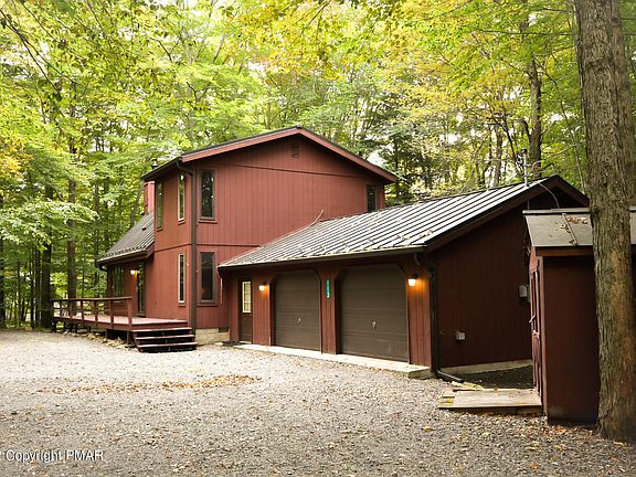 If you're looking for a place to call your own in the Poconos, this is the home for you. This 3 bedroom/2 bath home is nestled in the quiet community of Camelot Forrest and it can be your perfect Little Cabin in the Woods. It offers a large garage, second floor laundry, cathedral ceilings in the living room with a fireplace , a 5 year old Metal Roof and is set on a large double lot. Enjoy the communities 2 Lakes, a beach, tennis court and community garbage which is included in the dues. It is close to local restaurants, shopping and recreation. Minutes from Rt 80 allows for a short drive from NY or NJ. Schedule your showing today!