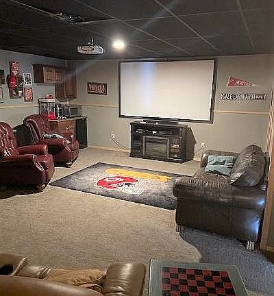 4 Bedroom / 3 Full Bath / 3 Car garage and Solar Panels Main level: Customized and Updated through-out. Main floor has 3 Bedrooms/2 Baths. Large open floor plan Kitchen to Living room. Main level w/Tile & Laminate floors, Carpet in bedrooms 2 & 3. Storm Door on main entry. Living room w/corner fireplace-Gas-(not hooked up there is a propane tank out back). Master Bedroom has a faux fireplace – not hooked up- installed for ambiance only. Master Bath recently updated. Laundry room w/utility sink. Appliances: Dishwasher, Disposal, Microwave, Refrigerator, Electric stove/oven, Electric water heater, Water softener. Also, the Bar w/microwave and refrigerator in the media room stay. The media room TV & equipment set up does NOT Stay. Lower Level: Finished Full basement, walk-out, tiled, w/media Room, large living room, Bedroom and Full Bath. 3 Car Garage, corner lot, deck and patio Lawn Sprinkler system, front and sides, control panel in garage Sentricon termite inground system, serviced by Mr. Bug Killer $300 yr. transferrable. Solar Panels, owned / plus Electric Heat Pump heating & cooling system Community sewer (fee included with HOA dues but grinder pumps are needed, we have installed a new grinder pump in 2021.) HOA dues $180 quarterly / HOA dues includes water and sewer. Centurylink internet / we use Centurylink internet for TV too. Average electric bill $160 depends on Sun and Weather (can be as low as $32.00)