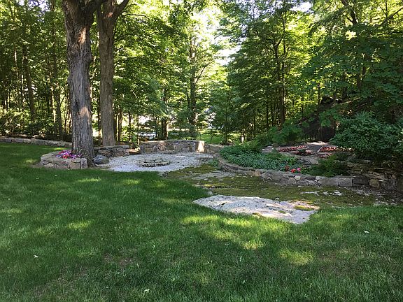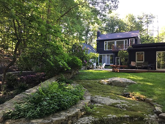 Post war contemporary situated on beautifully manicured acres with abundant stone walls and paths leading to a formal stone garden. A naturalistic gem. Situated in a quiet neighborhood with abundant trees and well marked hiking trails for four season enjoyment. The home is designed to take maximum advantage of the setting with large glass windows providing both privacy by their layout and wide vistas of the property. The home compliments the landscape in a true post war modern design with rough hewn cedar walls and ceilings kept warm by two fireplaces and multiple zone heating. This home is for the discerning buyer looking for something special.