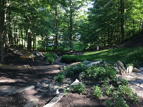 - Features: Level, Sloped, Professionally Landscaped, Lightly Wooded
