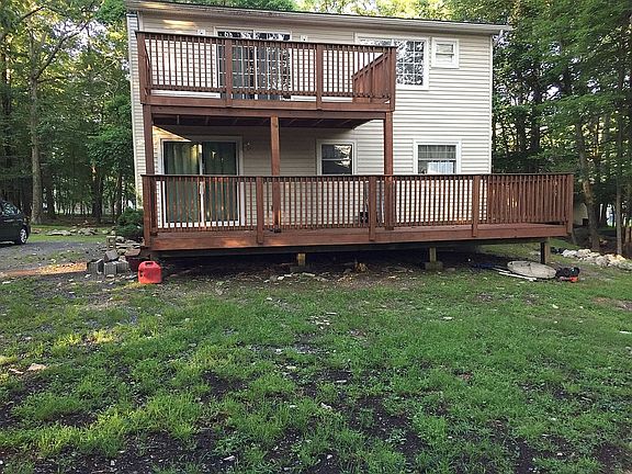 HERE IT IS!!! Privately set on nearly 3/4 of an acre & All NEWER RENOVATIONS!! Lake rights home in YOUR PRICE RANGE AFFORDABLY in this tough market!! Move right in to this SWEET RETREAT providing you w/ TONS of amenities in our unique Poconos market! 4 Years new - Kitchen counters, tile, appliances, & slider doors; Completely renovated 2nd floor bath; New tile in both baths; New living room laminate flooring w/ moisture guard; All new baseboard heat; New bedroom carpeting & newer decking & newer siding. Home also features living room wood stove & all spray foam insulation in attic & crawl space. Quiet setting in full amenity, private community close to NY and NJ. Community features, 7 lakes, 3 pools, beaches, playgrounds, tennis, secured entry & more! Low HOA fees and taxes - A MUST SEE!!