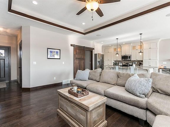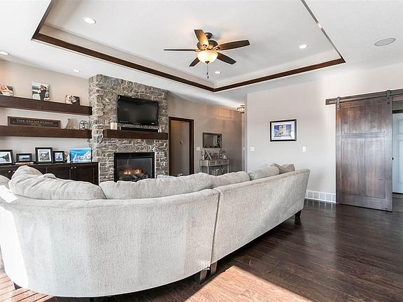 Gorgeous custom home on 3 acres! Unique and loaded with upgrades including hardwood flooring, floor to ceiling stone fireplace and barn door in the family room, a dream kitchen with walk in pantry and granite countertops, master suite with dual vanity, separate tub, and tile floors, and second bedroom with own full bath! Fully finished lower level with family room and 2 more huge bedrooms with walk-in closets! Oversized three car garage attached and two car detached heated and cooled garage. Stocked pond!