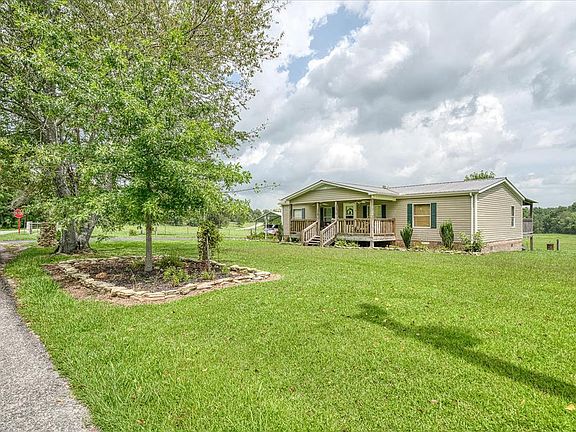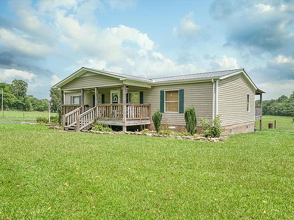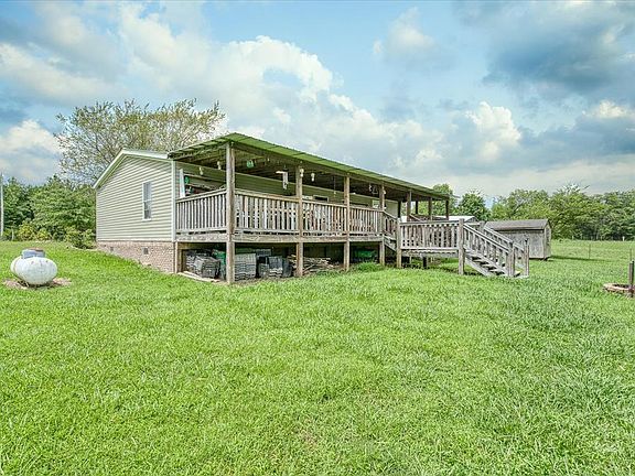 Country Deluxe manufactured home on a permanent block foundation dressed in curb appealing brick. Popular taupe siding with green shutters and metal roof adorned with spacious front covered "rocking chair" porch and HUGE back covered deck (full house length) to enjoy the rolling fields of the beautiful countryside. Inside features laminate and tile floors, gas fireplace, neat and clean, split floor plan, includes all appliances and washer/dryer. Handy carport for car protection. Nice landscaping and trees. Very nice home.