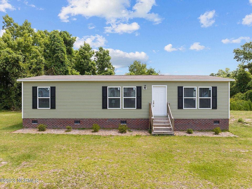 Excellent opportunity to own this beautiful, nearly new manufactured home just 2,000 feet from the Intracoastal Waterway. Situated on a spacious .49 acre lot, this 1,313 square-foot, 3 bedroom, 2 full bathroom home would make a wonderful investment property, a vacation home, or your newest full-time residence. Nestled in the established community of Moores Landing, this home is down the street from Sloop Point Marina and the public boat ramp for easy boating access. Deluxe home features include luxury vinyl flooring in the main common areas and bathrooms, carpet in the bedrooms, a premium master bathroom, and solid wood cabinets. A split floor plan features your master suite on one side with the two bedrooms on the other. The impressive master suite boasts a sizable walk-in closet, en suite bathroom with a dual sink vanity, large soaking tub, and walk-in shower. A spacious laundry room sits off the dining area with access to the backyard. With nearly a half acre, you'll have ample space for gardening, cooking out, or watching your pets or children play. There is also a new storage shed to house all of your beach toys and lawn equipment. Built in 2022, this home sits on a fixed brick foundation, so there are great options for financing. With 250 feet of road frontage, you'll love the wide lot. Conveniently located within minutes to numerous dining, shopping, and entertainment options and is only a short 15-minute drive to Surf City - even closer by boat! You'll also enjoy no HOA and no city taxes. Call today to make this beautiful home yours!