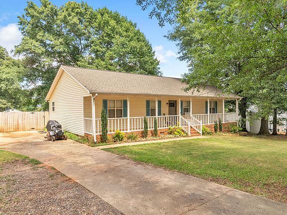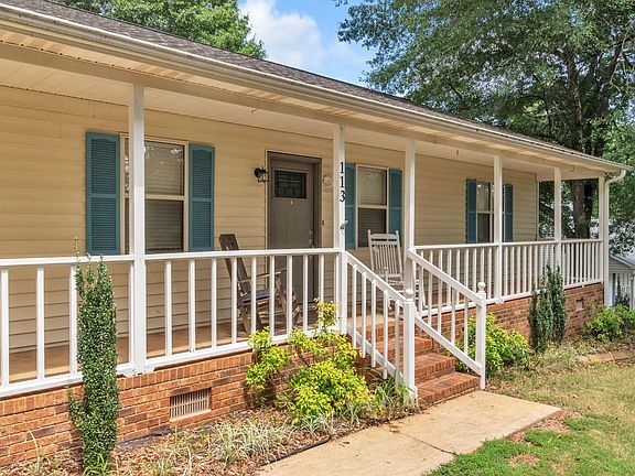 Welcome to 113 Moss Lane! This 3 bedroom 2 bath ranch-style home, with welcoming front porch, is located in the established neighborhood of Wellington Estates. The .58 acre lot has mature shade trees and within the fenced in back yard, a shed and deck. Inside, some features include wood-beamed cathedral ceilings, vinyl flooring in living areas, ceiling fans in bedrooms and living room, and separate laundry room. The master bedroom features a walk-in closet and master bath. Situated in a great location, just minutes from stores and restaurants, as well as convenient access to Interstates 26 and 85. Make an appointment to see this lovely home today!