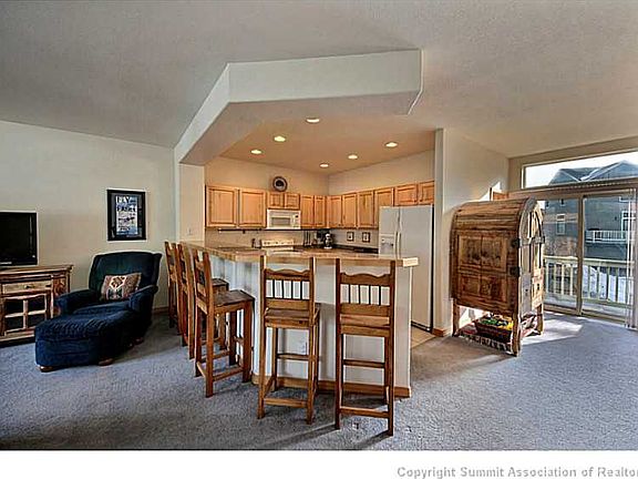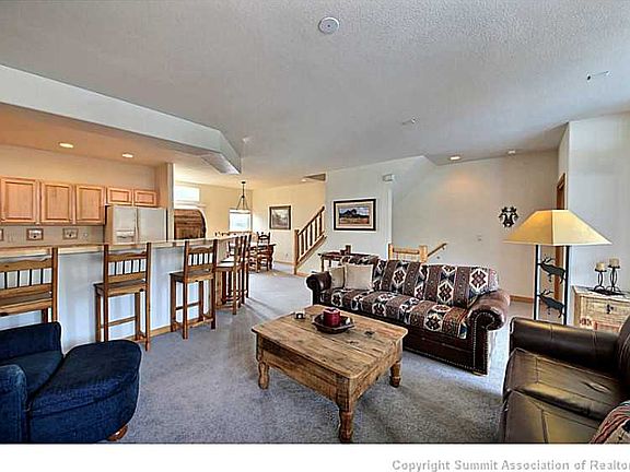 Nice 4 BD, 3.5 BA town home w/ 2 car garage. Large back deck is great for grilling and entertaining as well as a deck off the dining room to sit & relax + walk out patio. Spacious great room w/ gas fireplace, granite tile counters in the kitchen & large breakfast bar. Unit will sleep 10. Close to Summit Stage stop with a short trek to the Blue River that boarders the complex property.