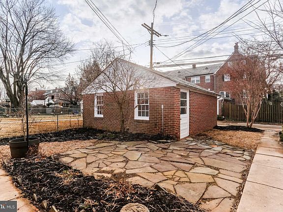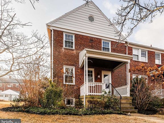Rarely available End Unit w/ 2-car garage and 1 additional parking space!!! Charming and freshly painted 3 BR 1.5 BA Brick Townhome in Rodgers Forge feat. Brand NEW windows, a covered front porch, spacious LR w/ nice size DR, gleaming dark refinished hrdws throughout, oak stairs, SS appliances & original ceramic tile in bathroom. The large backyard with slate patio is perfect for entertaining!