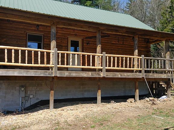 Log cabin located at 113 Murphy Lake Rd in Wells NY. This cabin has a very unique setting on 13.30 acres of land. The property is bordered by State of NY and boasts mountain views and fantastic sunsets.There are State hiking trails and snow mobile trails close by.The home is tucked in the woods with a long private driveway off a dead-end road. As you enter the driveway, you pass by a little one room bungalow with a wood stove, outhouse and wood shed. This is where it all began as the cabin was being built. As you continue up the driveway there are fruit trees, open clearings, wild life and peace and quiet. The home has an open living space with a loft, main floor bedroom, full bath and a 1/2 bath with laundry. There is a full walk out basement with two entrances that could easily be two more bedrooms, with a patio out to the yard. There is a 6 x 33 foot covered porch. Includes a separate root cellar storage, small barn/shed and a large metal storage unit. Amenities:include an automatic generator, 2 heat sources, drilled well and a private septic. If you like privacy, wildlife and peace and quiet this home is for you.