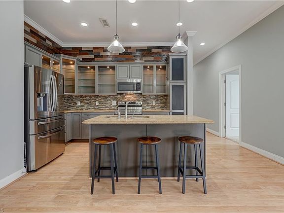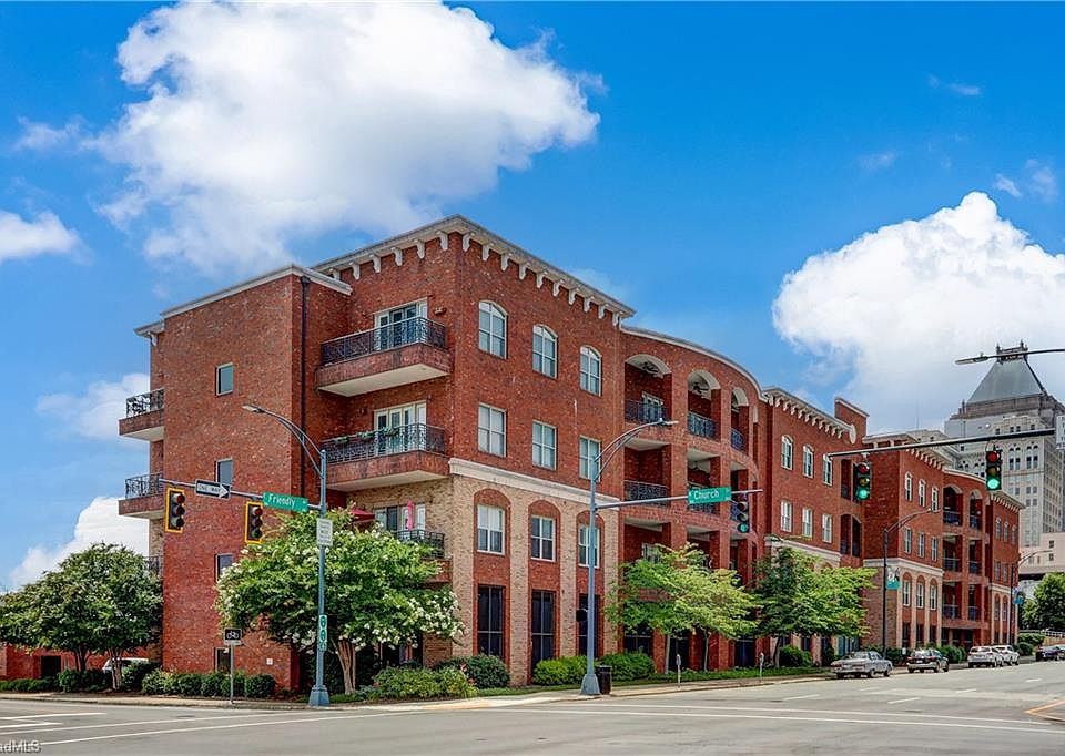 Back on the market at no fault to seller. Beautiful corner unit in desirable Governor's Court Condominiums in exciting downtown Greensboro! Three bedrooms include a sizeable primary suite with a large walk-in closet and private balcony to enjoy your morning coffee and sunset views in the evening. The open living room, dining room, and kitchen provide the perfect space for entertaining! The kitchen has an eat-in island, stainless steel appliances, and ample cabinetry. Superior finishes throughout! Includes storage room located on the lower level. Just blocks away from Tanger Performing Arts Center and downtown parks! Surrounded by great local restaurants and the cultural arts district! Quickly access the new Greenway and so much that downtown Greensboro offers.