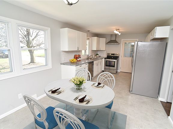 Gorgeous colonial! This home has been updated throughout! The brand new kitchen is a chef's dream with wonderful white cabinets, stainless appliances, tile floors and huge dining space. Just off the kitchen a living room with gleaming refinished hardwoods and a wood burning fireplace surrounded by built in shelves. The hardwoods lead down the hall to find 3, 1st floor bedrooms and a new full bath! Plus a massive mudroom off the garage! Upstairs 3 additional bedrooms, with new carpeting, and a second fully updated bath! For even more living space, the finished basement with bar! The possibilities for the space are endless! The picturesque yard awaits! Beautifully shaded by mature trees, a shed and a patio! It's ready for summer! A double wide driveway leads up to an attached 2 garage. Along with extra parking next to the garage! Don't miss the chance to make this one yours!