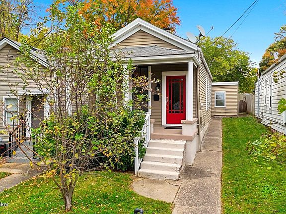 Located in the heart of Clifton just a block from Frankfort Avenue, this wonderful home features timeless appeal and numerous updates! The welcoming front porch is the perfect spot to enjoy the popular neighborhood. Once inside, you'll find the light-filled living room with hardwood flooring, floating custom wooden shelves, and fireplace surrounded by exposed brick. Down the hallway, there are two bedrooms, each spacious in size with original hardwoods. The eat-in kitchen boasts stainless steel appliances, ample cabinetry and counter space, and a dining area. Off the kitchen, there is a conveniently located laundry, as well as the beautifully remodeled full bathroom. The fully fenced-in backyard features a patio area with firepit, large and flat lawn, and detached, 1-car garage. An incredible opportunity in one of the hottest areas of Louisville!